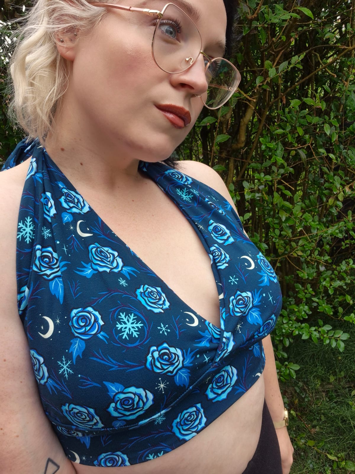 A triangle shaped tie up top, ties round the neck and the chest.